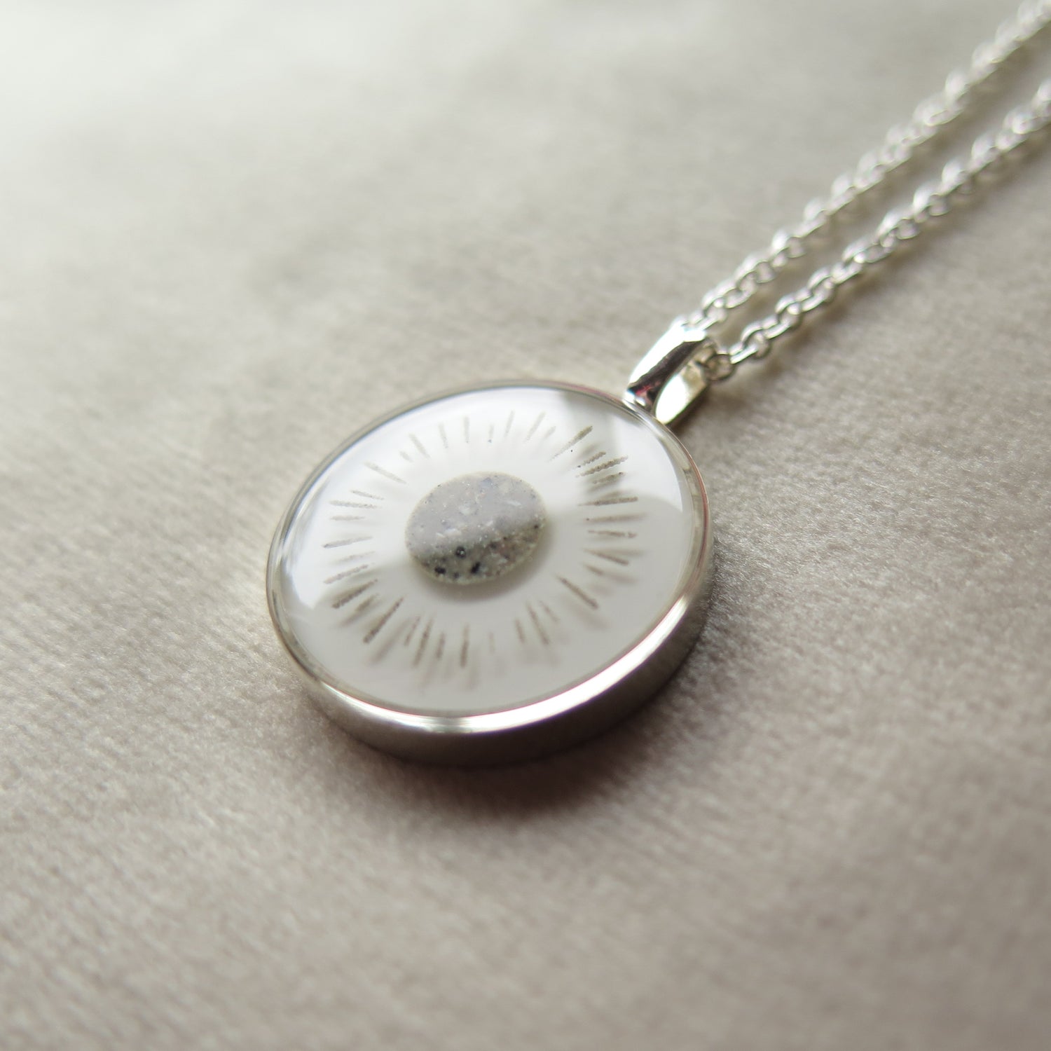 Jede Schmuckfassung kann komplett mit Asche gefüllt werden. Jede Asche ist anders, oft ganz hell und oft sehr dunkel.